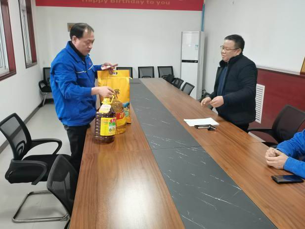2024年2月1日下午,薪旺實(shí)業(yè)有限公司工會(huì )主席趙永強、工會(huì )宣傳委員馮學(xué)藝分別慰問(wèn)薪旺炭素公司、薪旺包裝公司困難職工,送去工會(huì )的關(guān)懷與問(wèn)候。